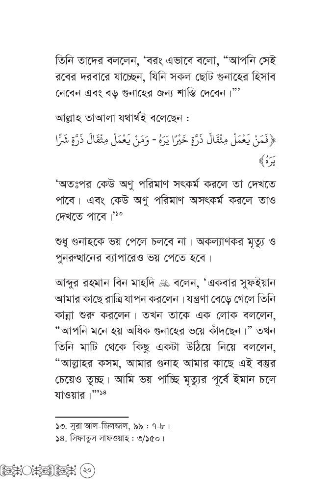 প্রিয় পাঠক, ‘আল্লাহর ভয় : নির্মল জীবনের পাথেয়।’—ছোট কলেবরের অনুপম এই পুস্তিকাটিতে উঠে এসেছে আল্লাহ ভয় ও আশার প্রকৃত মর্ম, ভয় ও আশার গুরুত্ব, তাৎপর্য ও ফজিলত।…