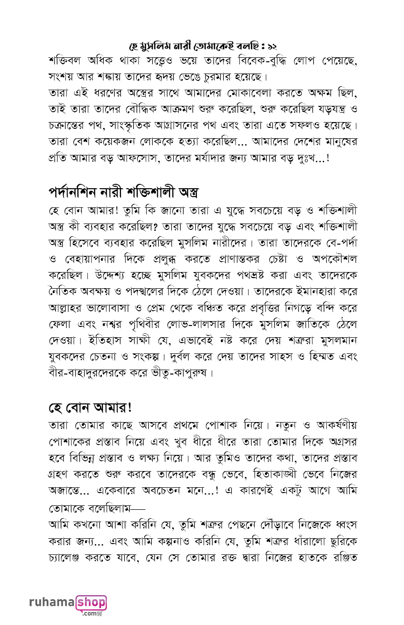 হে মুসলিম নারী! তোমাকেই বলছি বইটির ফ্রি পিডিএফ অফিসিয়ালি অনুমোদিত নয়।
