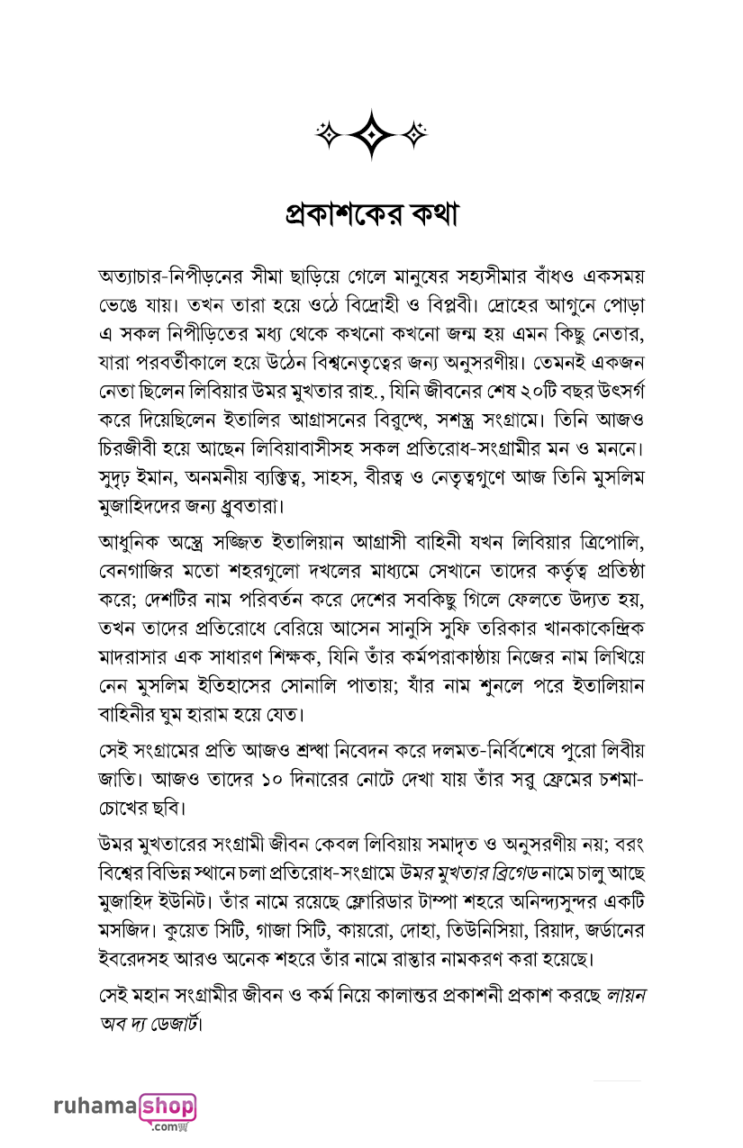 সেই মরুসিংহ উমর মুখতারের জীবন ও কীর্তি নিয়ে রচিত এই বইটি।