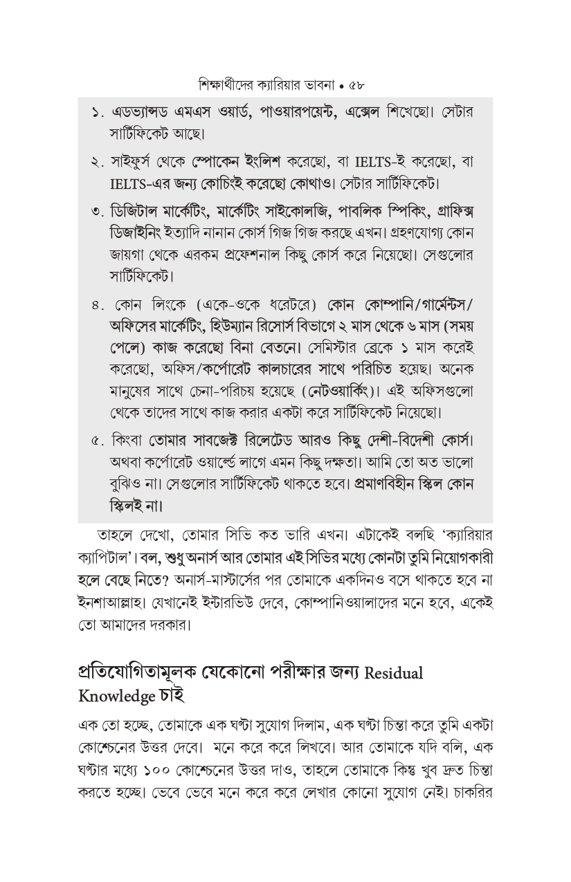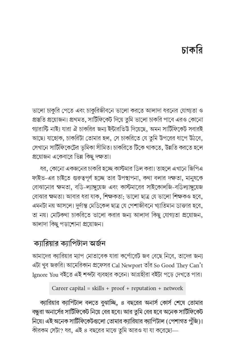সুতরাং এই বই আপনাকে এমন কিছু দক্ষতার কথা বলবে, যা সবক্ষেত্রেই আপনার কাজে আসবে। যে মৌলিক স্কিলগুলো আমাদের পাঠ্যপুস্তকগুলো আমাদের কমই শেখায়।